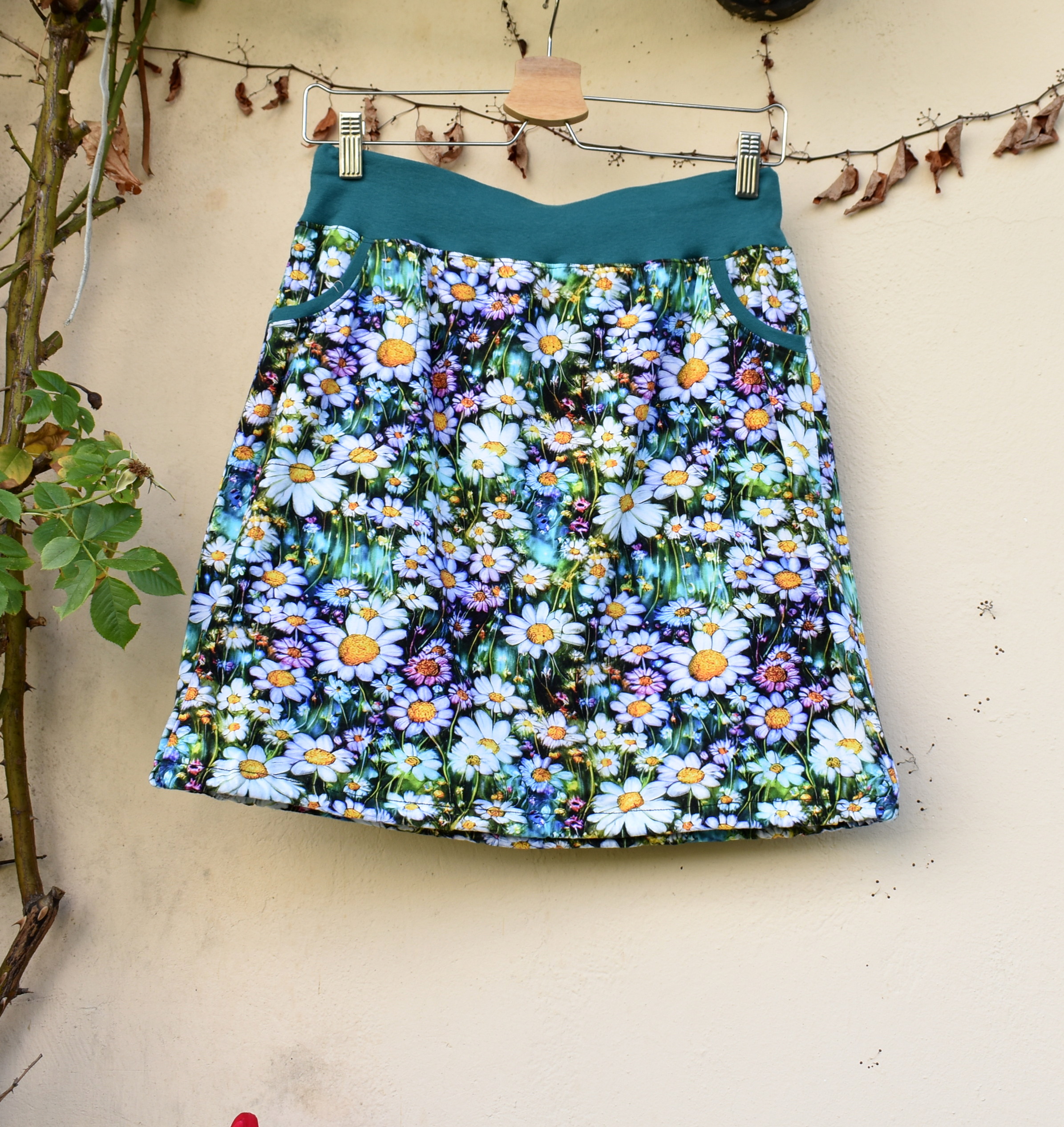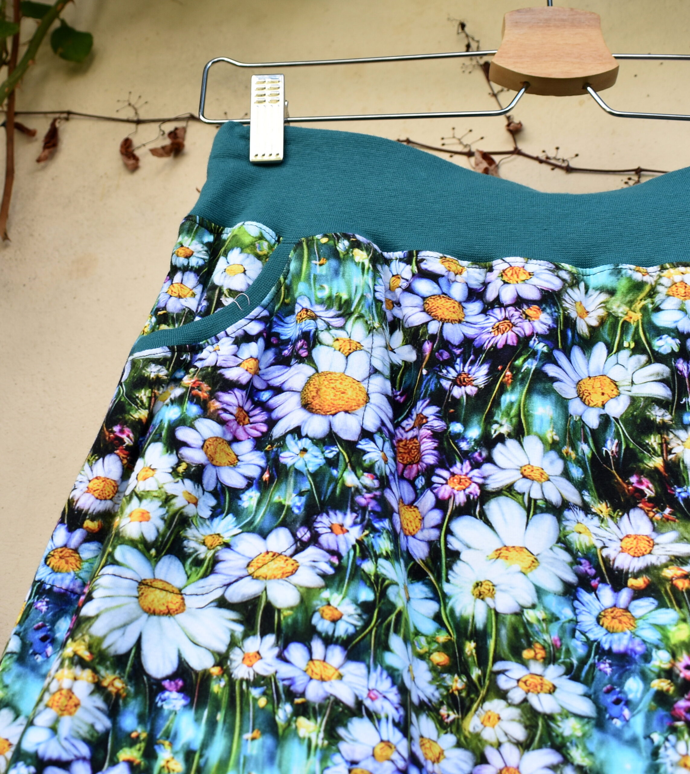 Vpředu 2 kapsy, pružný náplet v pase, dole stahovací šňůrka.